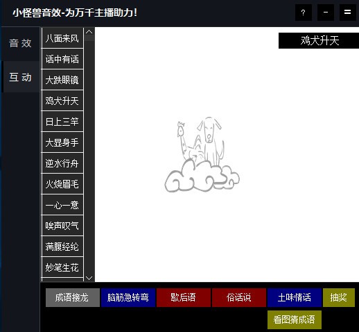 小怪兽音效助手为直播类主持人提供音效辅助的软件,适用于QQ群,虎牙直播等平台,除了为用户提供音效外,还支持一些小功能,如抽奖、看图猜成语等,还支持自定义快捷键。