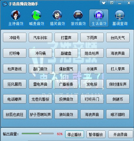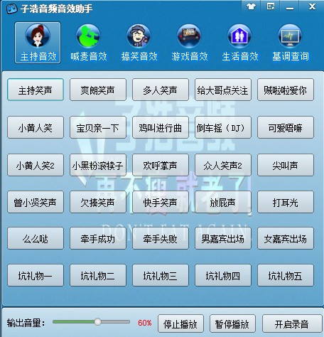 子浩音频音效助手是一款方便易用的主持人音效工具,该软件内置了各种声音,同时可以自定义快捷按键,自带电音基调查询,自带无损录音功能,拥有最强大的功能,让您的主播道路越走越顺。