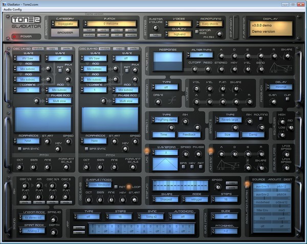 Gladiator支持多达18个振荡器的声音堆叠,4倍立体声齐声和水晶清晰的音质。