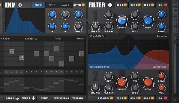 Icarus配备了合成器中最大的滤波器。这款音频引擎提供了许多强大的功能,如鼓声编曲器、内置的人声解码器、重合成器、滑音编曲器、最先进的wavetable-editor、强大的振荡器部分、MSEGs等。