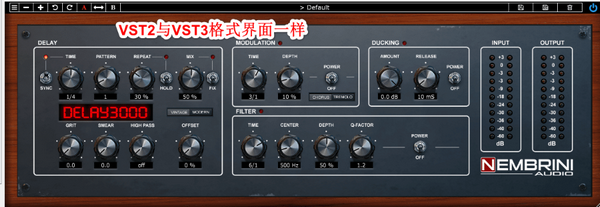 DELAY3000具备16种立体声多头延迟的pattern,可以保持住延迟效果,可以跟DAW速度同步,带有调制电路,ducking抽吸效果和滤波器。