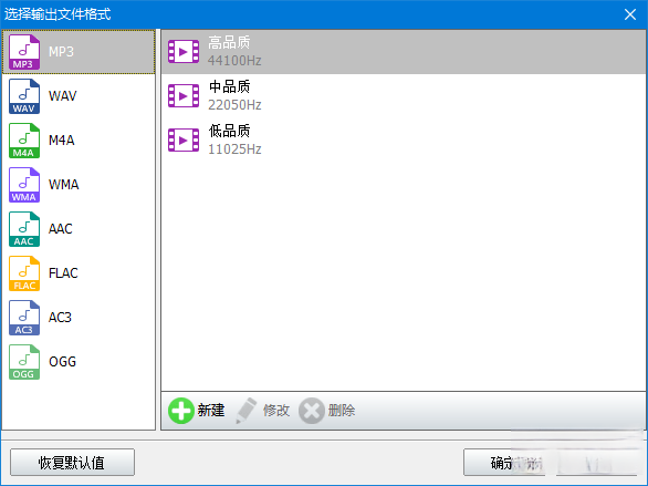 自定义文件输出格式高品质MP3、WAV、FLAC音乐等