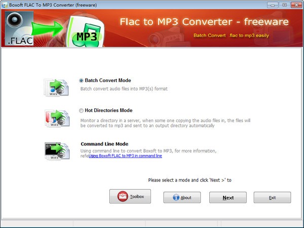 除了批量转换模式,Boxoft FLAC转MP3转换器还为您提供了另外两种方便的模式:热目录模式和命令行模式。这些模式将帮助您简化您的转换工作,并为您节省大量时间。