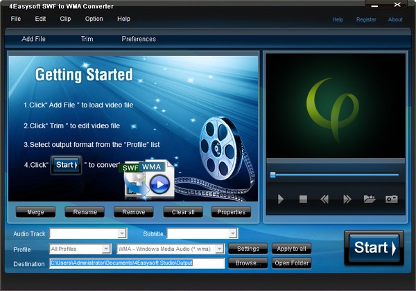 4Easysoft SWF到WMA转换器提供了一种将多个文件组合和连接在一起的简单方法。