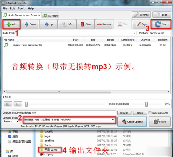 3.点Start按钮开始转换,等待完成,最终的mp3文件在输出目录下的“无损_Lame”文件夹内。