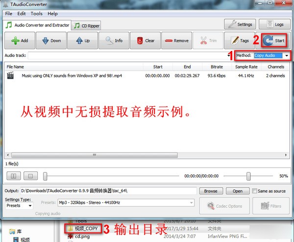 2.点Start按钮开始提取,等待完成,最终的音频文件在输出目录下的“无损_COPY”文件夹内。