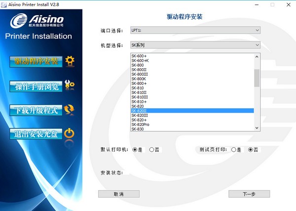 爱信诺sk820打印机驱动 v2.8.2官方版打印机驱动 / 9.9M