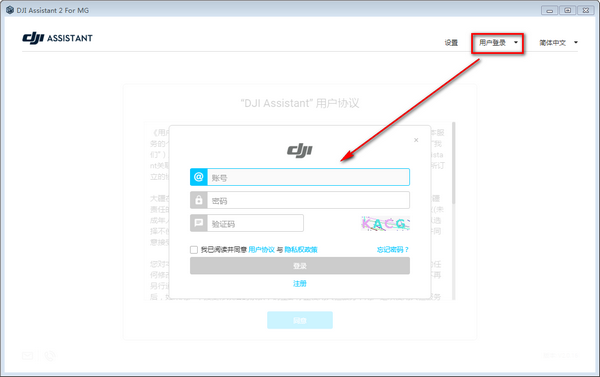 三、切换完成后,用户点击登录可以登录自己的大疆账号进行远程控制升级。