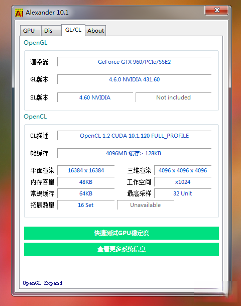 3、你可以使用Alexander的快捷显卡测试功能,支持多个同时运行。 - 测试功能原版版权来自GK3D。