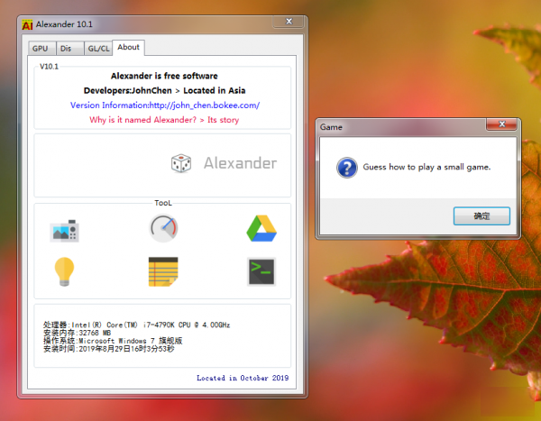 显卡检测软件(Alexander)是由精易论坛坛友开发的实用显卡检测工具,中文名亚历山大大帝,可以精确显示显卡的各项硬件信息参数,实时同步电压、温度等关键信息,便于超频玩家对显卡状态进行检查监控。软件还内含亚历山大大帝的故事及游戏彩蛋,待你去发掘~!