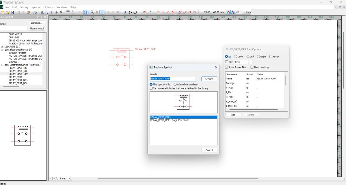 TinyCAD是一个简单易用,功能强大的电路图绘制软件,提供完整的电子元件组件,各种模块的组成方式供选择设计,也可以添加模块来组成绘制多边形、折线、矩形或椭圆等不同类型的电路原理图。可以直接打印或者导出到PNG 格式的图片。同时也可以设计PCB排版。
