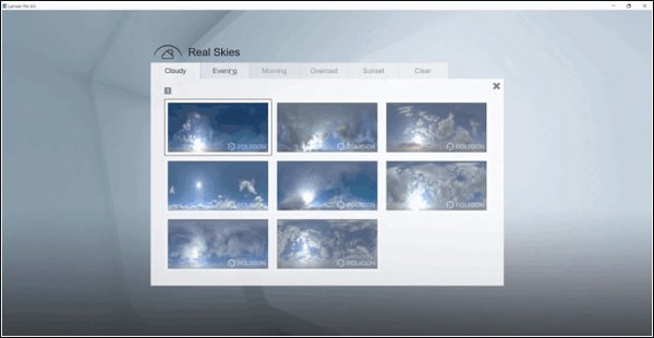 在Lumion9中有39个天空光(Sky Light)设置,一键转换夏日蓝调、风暴黑灰色或暮光余辉。Sky Light 2(相对于lumion8这次lumion9优化天空光称之为Sky Light2)和Real Skies高度配合,它们与其他场景构建工具和效果协同工作。例如,添加一个阴天的真实天空,并在您的设计和场景的其余部分投射出阴云密布的柔和光线。改变云的类型,观察阴影伸展和收缩,变暗和变亮。(一句话就是两个功能高度匹配相互影响)