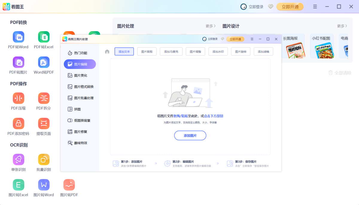 3.超多图片编辑功能,一键人像美化、滤镜特效、AI抠图,1秒变PS大师,办公娱乐两不误!