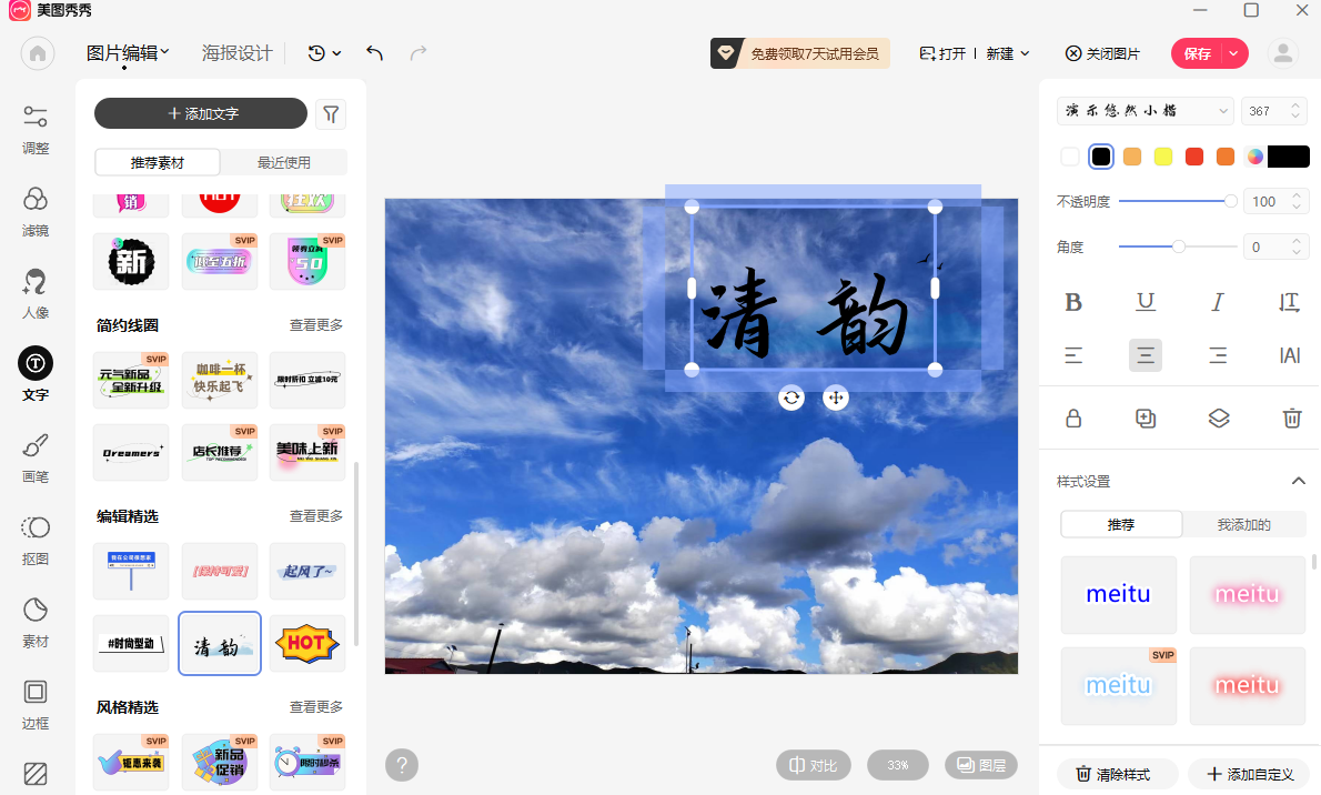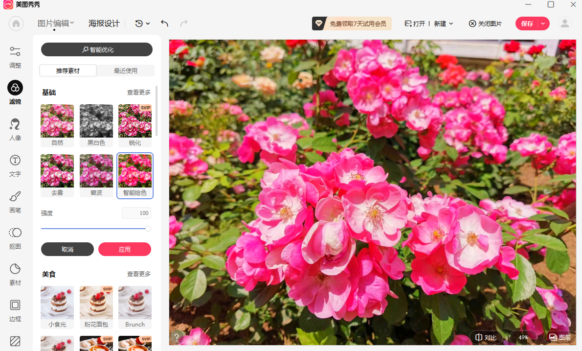超能AI,超会设计!美图秀秀64位电脑版是专业智能的电脑作图工具,提供全面的AI功能,如AI扩图、AI改图、AI消除、AI变清晰(画质修复)、AI商品图、智能抠图等多个高效出图神器,帮你轻松设计!专业的人像美容:一键美颜、瘦脸瘦身,修出高清自然神颜;图片编辑基础工具:尺寸裁剪、矫正、加文字/水印、调光调色等;超多特色功能:批量处理、拼图、证件照、切图、GIF、涂鸦、马赛克、背景虚化等;丰富的海报模板:“改字换图”就能产出电商主图、详情图、优惠券等,快来试试吧~