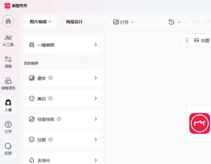 修出高清自然神颜,医美级人像精修,一键捏脸、磨皮、美白...轻松修出精致上镜脸。