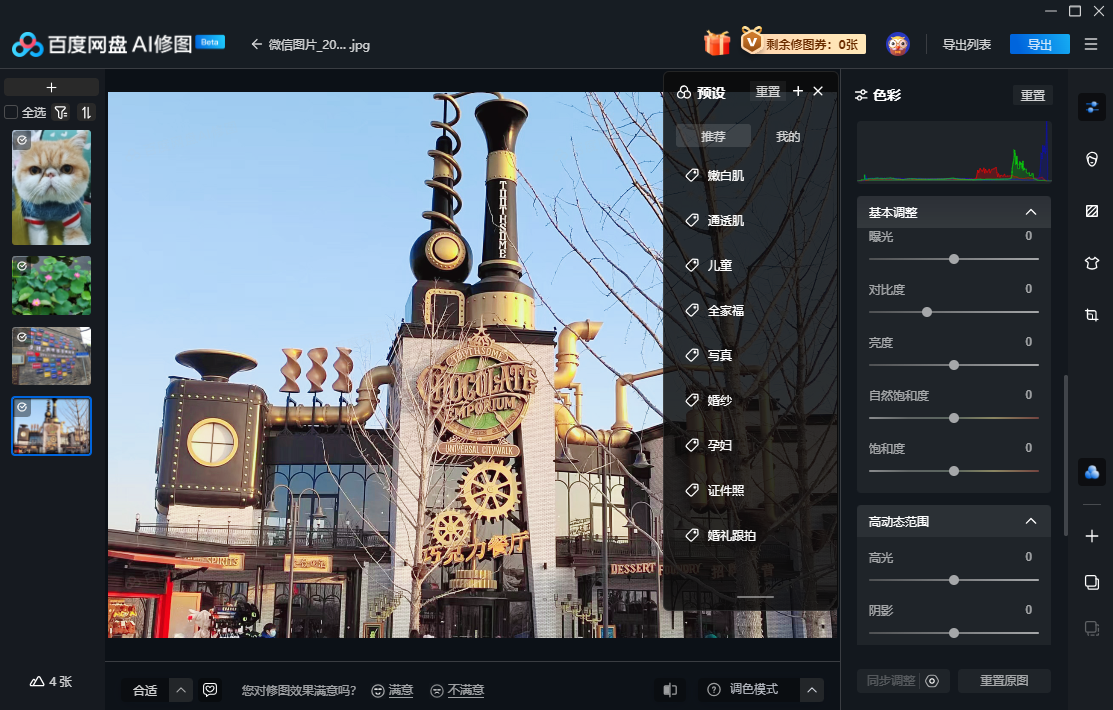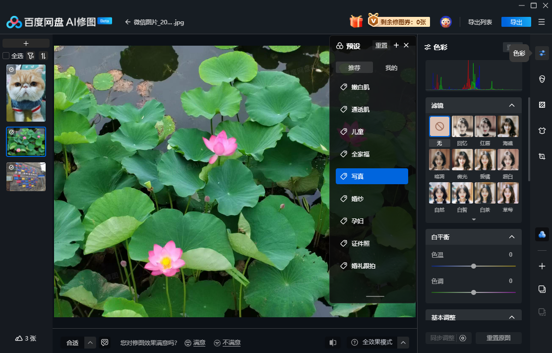 百度网盘AI修图是一款为商业摄影打造的智能修图软件,为您提供商业级修图功能,通过智能修图快速达到专业的修图水平,帮助摄影机构/修图师/摄影师提升修图效率,同时我们也可以帮助您管理照片,支持将图片一键上传至网盘空间,实现【即拍-即修-即交付】能力,繁琐的修图步骤我们都将为您解决~