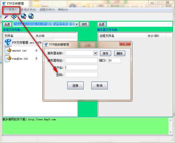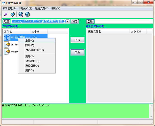 十分简单方便的FTP文件管理软件,实现本地文件与FTP服务器的快速上传下传等功能。