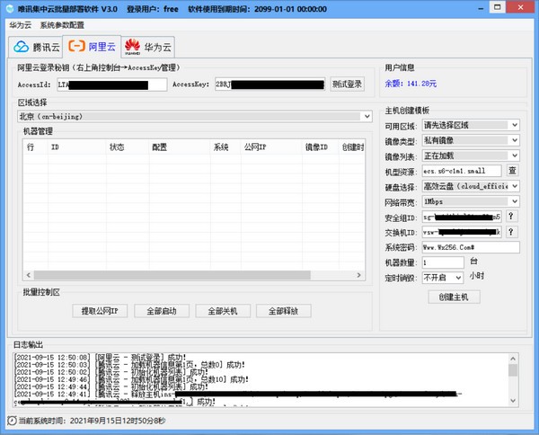 唯讯集中云批量部署软件可以批量自动部署各种云ECS服务器,如阿里腾讯百度云,实现免登录WEB网页端平台即可批量创建滴云,支持批量提取华为云主机公网IP、批量启动、批量关机、批量释放、批量创建主机(1000台以上)等批量功能,为服务器集群运维管理的必备好工具。