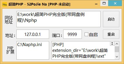 超简PHP软件由网友Na开发,用于精简PHP环境搭建,输入网站地址、地址、端口和PHP扩展即可快速搭建自己的PHP环境!
