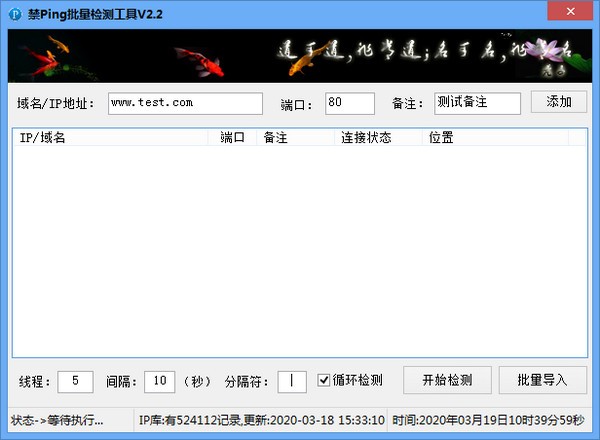 有些服务器禁止ping,直接cmd命令里面ping是看不到结果的,利用这个软件就可以了,添加IP和端口或者域名和端口都行,软件上的水波特效很酷,这次专门换了背景哈