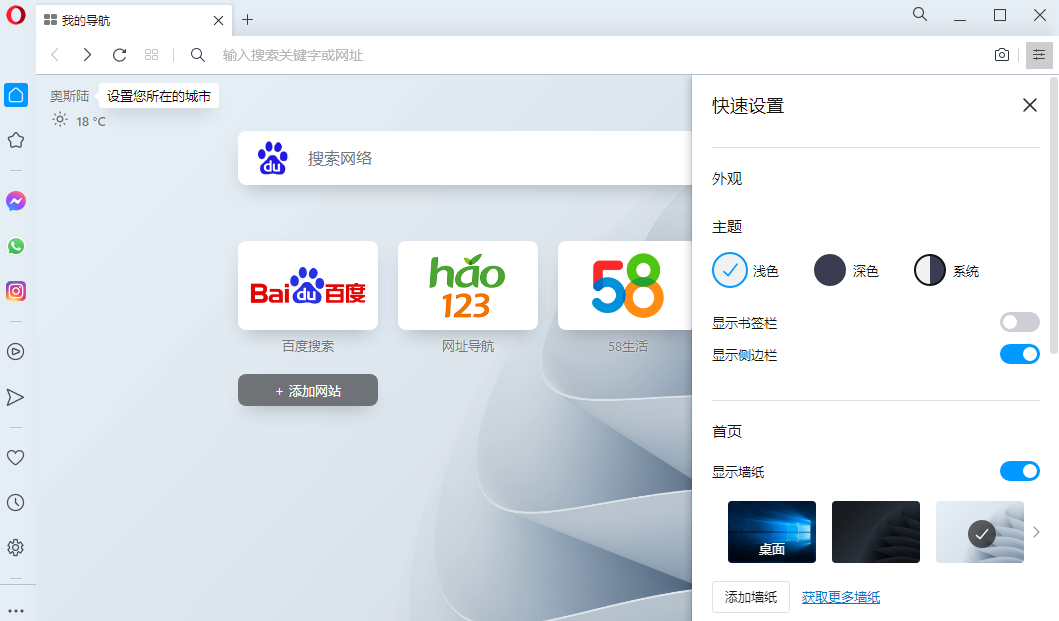 Opera采用界面加载语言包的形式,理论上可以有任意语言版本的Opera。