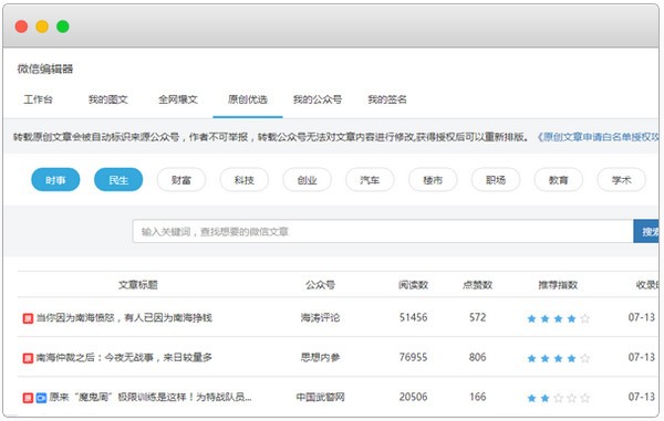 微信编辑器精选微信原创认证文章,使用优质原创文章互惠互利。