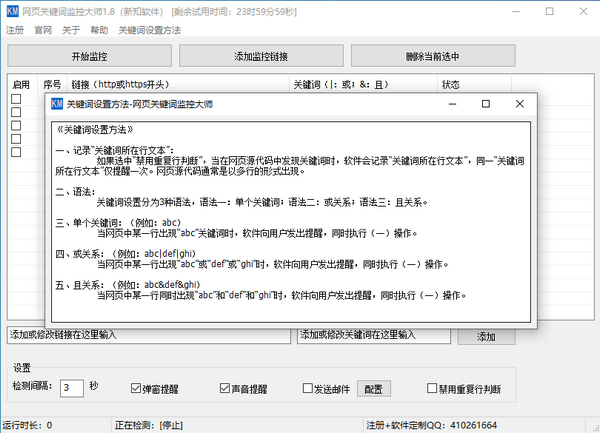 2、检测更新功能,支持设置关键词来判断网页内容是否有更新