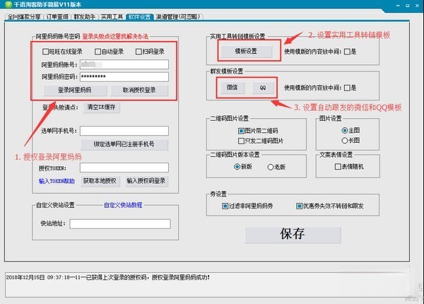 授权登录阿里妈妈,并设置实用工具转链模板和自动跟发的