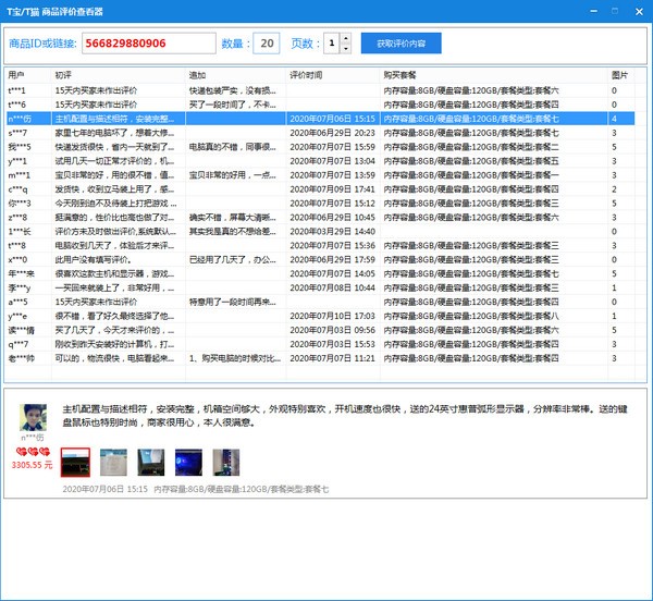 T宝T猫商品评价查看器是一款淘宝评价和图片查看器,可以查看淘宝、天猫商品的评价内容、图片、视频,输入商品ID或链接就可以获取评价内容!