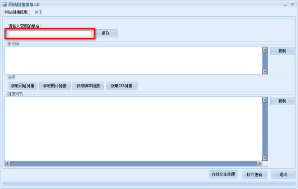 网站链接抓取器是一款简单易用的能够快速抓取网页上所有连接的软件,能够批量抓取某个页面的网站连接和图片链接等链接,无论是用于淘宝主图抓取还是用于仿站都是一款很好的工具,有需要的可以下载使用。