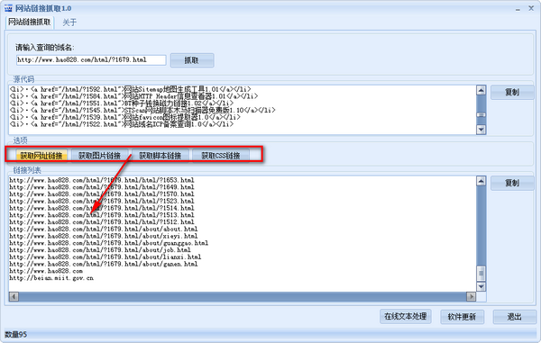 网站链接抓取电脑软件版,绿色设计,免安装。批量获取网站链接、图片链接。