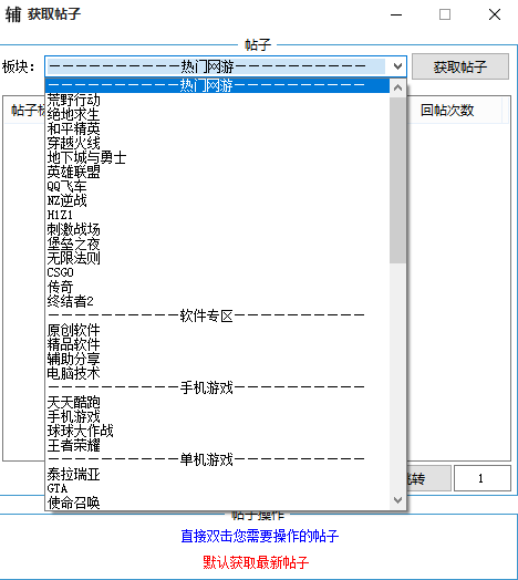 三、点击获取帖子,选择喜欢的板块的帖子快速获取。