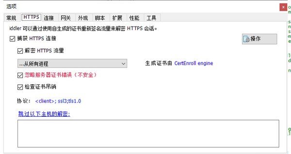 4.对fiddler工具选项进行配置。跟我图片的一样。到https的时候会让你信任。你点yes。
