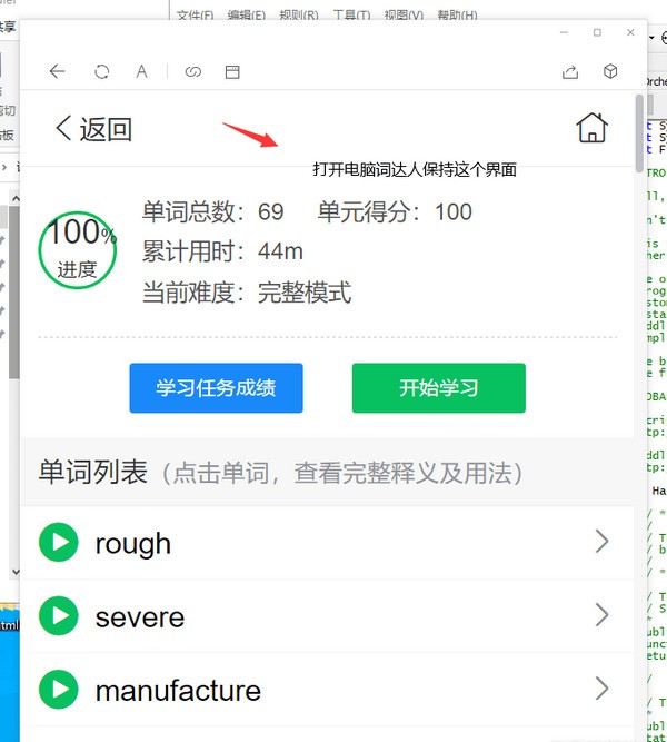 词达人出答案软件,通过抓取网页数据抓出答案,选好单词,跳过最开始的听力部分,就可以自动开始学习了!