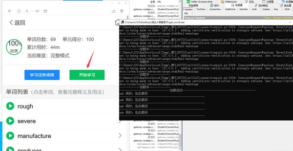 5.词达人要选好单词,跳过最开始的听力部分。然后返回。看fiddler。