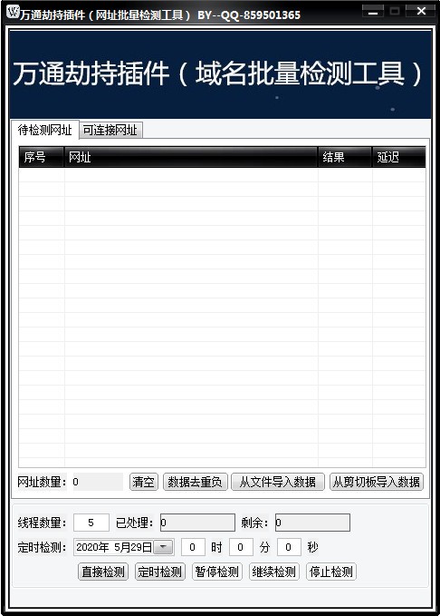 万通劫持插件(域名批量检测工具),本工具的主要功能是,域名的有效性综合检测工具,针对那些域名的,检测不能访问的网站,然后把活站,可以访问的网站留存下来!