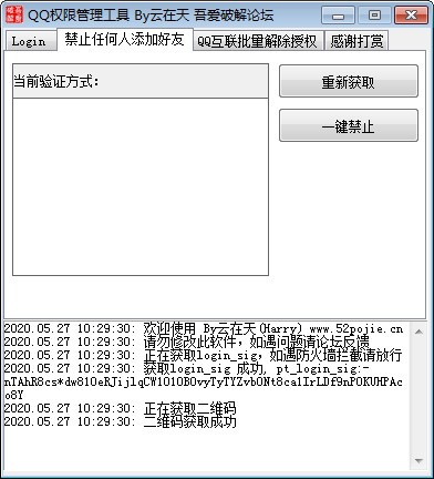 QQ权限管理工具最主要的功能就是QQ禁止任何人添加好友,获取当前添加好友方式,设置禁止任何人添加为好友,计划添加添加批量解除QQ互联授权的功能!