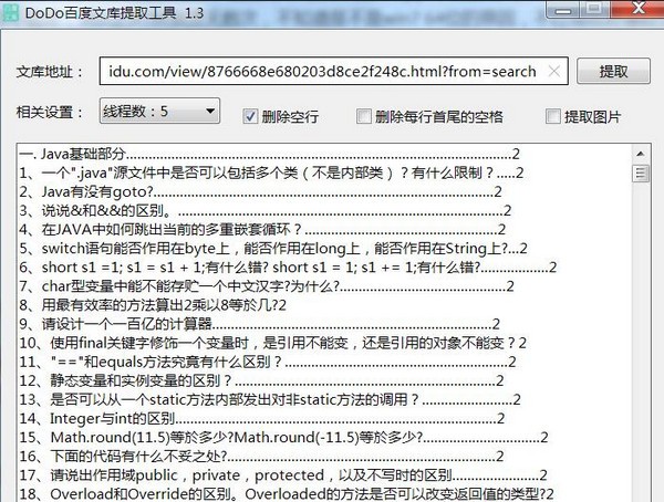 DoDo百度文库提取工具,占用内存小,运行快,可提取百度文库的资料,支持格式*.doc、*.txt、*.ppt等格式,无需登录的百度文库免积分下载工具!