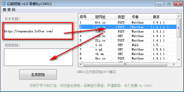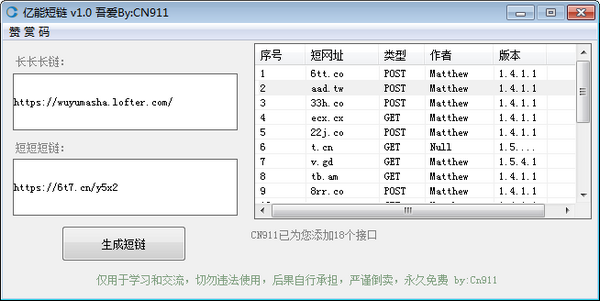 亿能短链是一款简单但是功能强大的短链接生成工具,通过亿能短链用户能够借用国内多个短链接生成端口进行短链接生成,软件随时更新端口,所以可以使用非常久,并且没有数量和时间限制,有需要的可以下载使用。