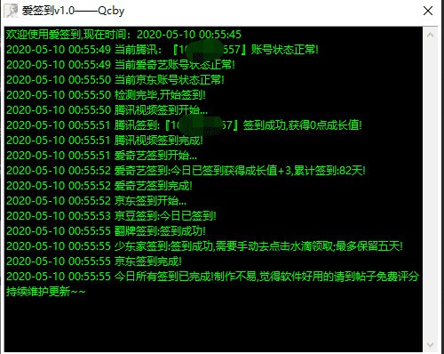 大家好鸭,之前做过京东签到、腾讯视频签到等小工具。由于个人原因也弃坑很久了,因为疫情原因这几天正好失业了 闲着没事干就重新将之前的小工具制作了一个整合版“爱签到”集成了 腾讯视频、爱奇艺、京东少东家等签到在内,至于后期会不会增加其他的签到平台就看情况吧