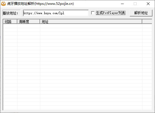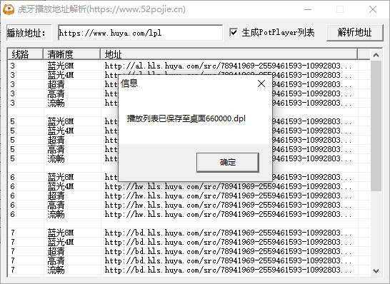 虎牙播放地址解析软件支持牙直播地址提取,生成PotPlayer列表,PotPlayer打开链接卡顿处理,复制虎牙直播地址到编辑框,点解析即可!