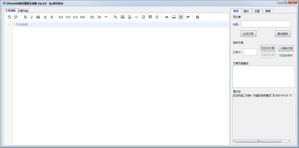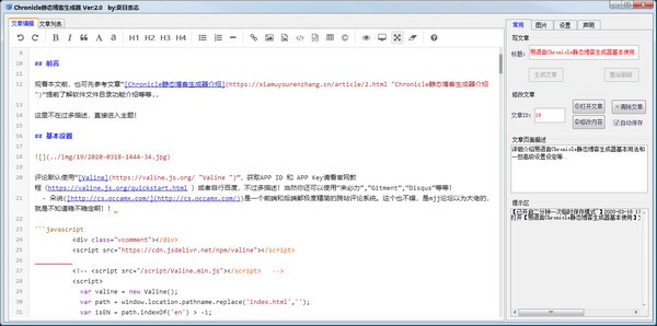 Chronicle静态博客生成器,是使用易语言开发,搭配“Editor.md”编辑器,可以使用markdwon写文章,也支持html格式代码,赶快下载使用吧!