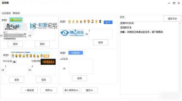 论坛签到器软件使用易语言编写,用了果核皮肤模块,群签到功能使用QQHelperEC,目前仅支持签到52破解论坛,卡饭论坛,精易论坛,52辅助论坛,52技术吧论坛,以及qq群签到。