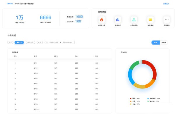 1、账号管理:用于对企业账号信息的管理,可以完整记录账号信息,无需借助其他软件进行信息的整理,防止数据丢失,同时支持信息的导出备份