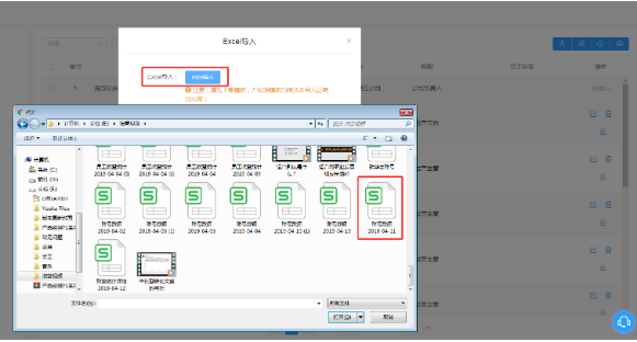 5.模板填写完毕之后保存一下,然后返回后台点击excel上传,选择文件然后导入,导入成功之后会有对应的提示,导入错误的账号会提示错误的原因,错误账号修改后单独上传即可。