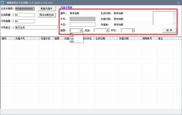 一、下载打开软件,首先设置面额和点卡的详细信息。