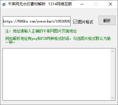 千库网无水印素材解析软件能够获取到千库网高清的素材,服务器单线程查询,输入地址开始解析,请大家合理使用!