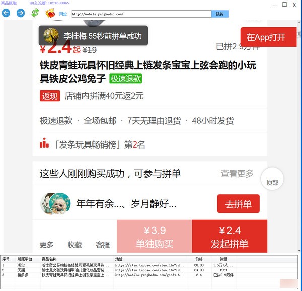 淘宝拼多多商品抓取工具可抓取淘宝搜索页单品,整页,天猫淘宝店铺单品整页,拼多多单品,适合从事电商的朋友们使用!