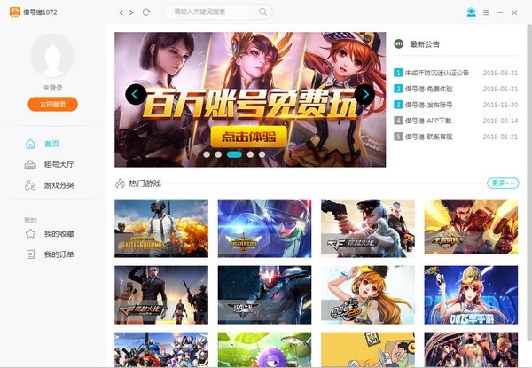 支持国内外多种热门游戏账号租赁,如绝地求生,CF,LOL等
