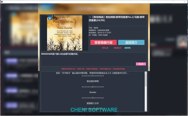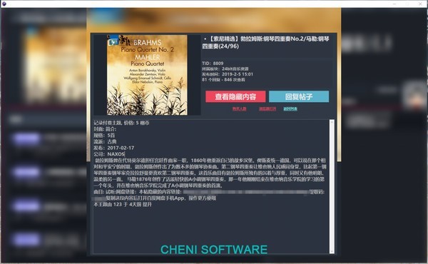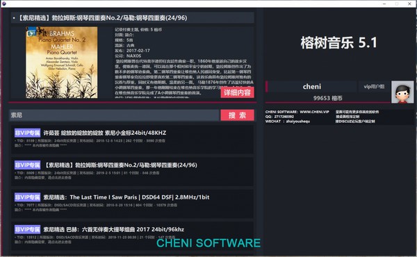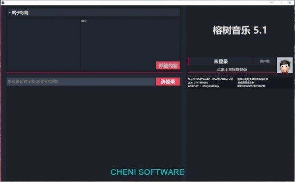 榕树音乐网客户端DISCUZ APP for windows,本套界面均采用CHENISOFTWARE客户端思路设计,启用全新暗色UI,全程内容展示使用组件展示,彻底摆脱网页浏览框,优化搜索速度!